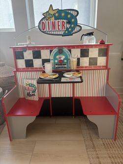 Melissa & Doug Double-Side Wooden Star Diner Restaurant Play space and accessories set$60Santa Fe Springs, CA