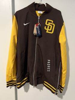 Men's San Diego Padres Nike Brown/Gold Authentic Collection Dugout Relaxed Full-Zip Bomber Jacket $170San Diego, CA