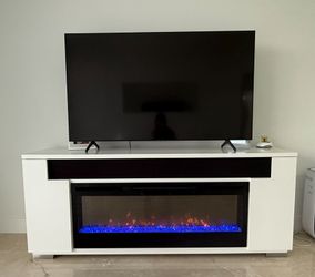 White Electric Fireplace Tv Stand With Speaker $800Miami Beach, FL