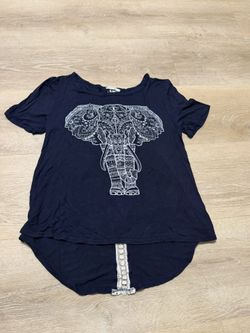 Boho Elephant Graphic Tee – Navy Blue with Lace Back Detail (Size L)$14Homewood, IL