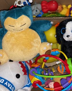 A box of little boy infant stuffed animals and small toys$10Stockton, CA