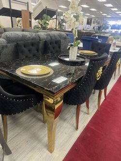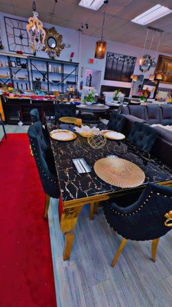 π€ 7pc Dining Set Black And Gold Faux Marble Was $1989.99 Now On Sale $1,489Bakersfield, CA