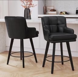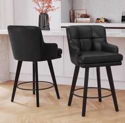 360°Swivel Counter Height Bar Stools Set of 2 with Back, 26 inch Solid Wood Legs, Black Bar Stool Modern Kitchen Island Chairs, Faux Leather$240Yonkers, NY