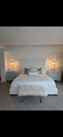 Beautiful King White Velvet Platform Bed! $699Dallas, TX
