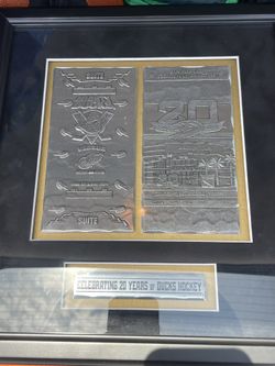 Very Rare Anaheim Mighty Ducks Framed 11" x 12" 20th Anniversary Award Tickets$100La Habra Heights, CA