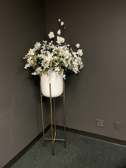 Modern Gold Plant Stand with White Planter & Floral Arrangement$50Houston, TX