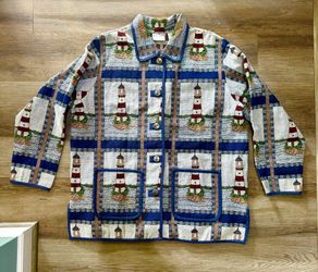 Lighthouse Tapestry Brocade Barn Jacket w/Silver Anchor Buttons Size XL$40Williston Park, NY