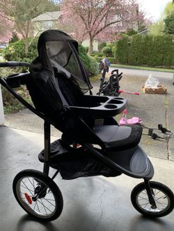 (With a car seat) Graco FastAction Fold Jogger Click Connect Stroller, Gotham, 37 lbs$100Bothell, WA