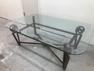 Solid wrought iron table base and glass coffee table $300Lake Oswego, OR