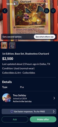 Shadowless Pokemon Card $10Los Angeles, CA