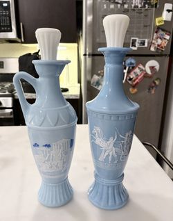 2 Vintage 1960s Jim Beam Blue Milk Glass Greek Chariots Decanter EMPTY$45Phoenix, AZ