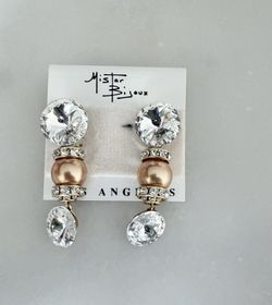 VTG Mistar Bijoux Crystal Rivoli Golden Pearl Dangle Earrings on Orig Card. 80’s$20Phoenix, AZ