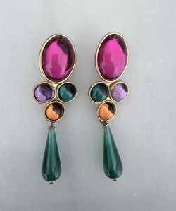 Vintage 80s Acrylic Matte Gold Dangle Cabochon Clip on Earrings Multicolor Drop$30Phoenix, AZ