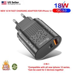 2 In 1 For iPhone 13/12 Pro Max/Mini/11 18W USB Type C Fast Wall Charger PD Power Adapter$9Los Angeles, CA