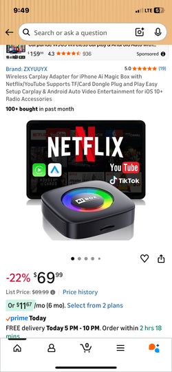 Wireless Carplay Adapter for iPhone Ai Magic Box with Netflix/YouTube Supports TF/Card Dongle Plug and Play Easy Setup Carplay & Android Auto Video En$60Bakersfield, CA