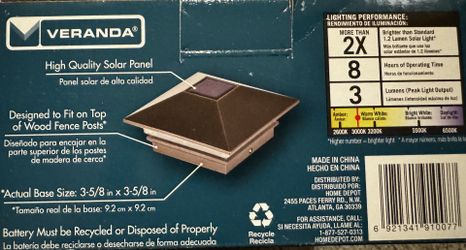 Solar Powered Post Cap fits 4" x 4" fence posts Bronze 700mAh NiMH -- 3 available$8Seattle, WA