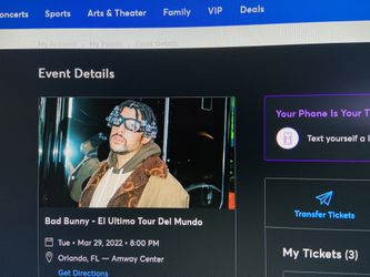 [IN HAND] Bad Bunny Tickets Amway Arena Ticketmaster Good Seats$300Belle Isle, FL