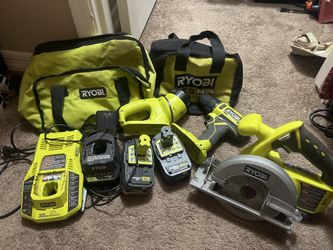 🔥 RYOBI ONE+ COMPLETE TOOL SET – DRILL, SAW, BATTERIES, CHARGERS, flashlight + BAGS 🔥$200Chandler, AZ