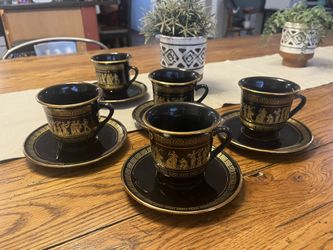 Set Of 5 Teacups W/Saucers SK Demitasse Handmade In Greece Black With 24k Overlay Designs$30Chandler, AZ