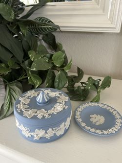 Wedgewood, Blue And White Jasperware Round Trinket Box And The trinket Dish$40Anaheim, CA