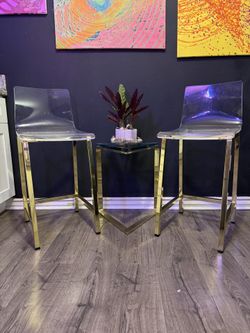 Modern Acrylic Bar Stools with Gold Metal Base – Set of 2$100Mesa, AZ