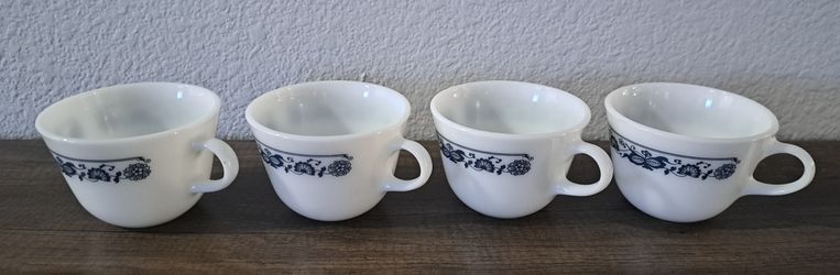 Pyrex Corningware Old Towne Blue Onion White Milk Glass Coffee Mugs$30Hemet, CA