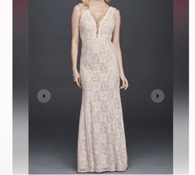 Like new David's Bridal Ivory Nude Lace Plunging V-Neck Wedding Gown size 8. This stunning cream lace evening gown is perfect for any formal occasion.$65Sacramento, CA