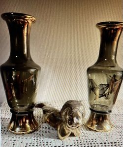 Pair Of Vintage Wheatonware Green Vases With Gold Designs$25Bay Shore, NY