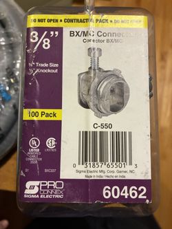 Sigma Electric ProConnex 3/8” Flexible / Die cast zinc AC/MC Connector Conduit Fittings 100 -Pack Item #60462 | Model #C-550$40Deerfield, IL