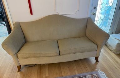 Thomasville Classic Camelback Sofa 80” Wide Golden Brown Fabric Cherry $400Des Plaines, IL