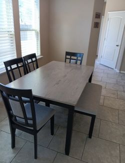 NEW Beautiful Wood Grey Dining Table + 4 Chairs Chair plus Bench Set$399Houston, TX