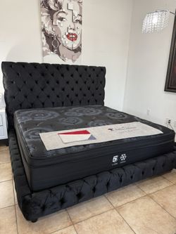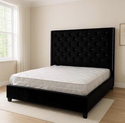 NEW IN BOX- 6FT Black Velvet Fabric Queen & King Size Bed Frame with rhinestones$269Katy, TX