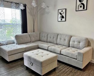 NEW IN BOX Grey Reversible Sectional + Ottoman -Fabric Water Resistant FINANCE available $54 down$699Houston, TX