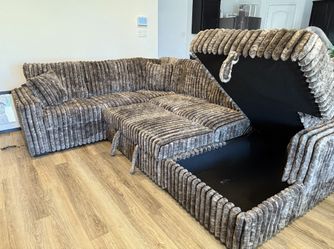NEW IN BOX - Brown Sectional With USB Charging Ports & Pull-Out Bed & STORAGE CHAISE** Finance $39$1,199Houston, TX
