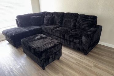 (NEW IN BOX) Black Cord Sectional With Cup Holder And Free Ottoman -FINANCE AVAILABLE$599Houston, TX