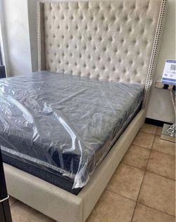 (NEW IN BOX) Queen, Full Size Beige With Gold Bed Frame 👑$259Houston, TX