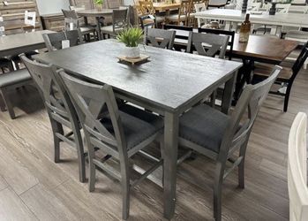NEW IN BOX 7 Piece Grey Wood Dining Set with Chair FINANCE $54 down pmt$599Houston, TX