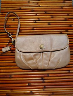 Vintage Authentic COACH Gold bronze metallic Genuine Leather medium flap clutch$40West Warwick, RI