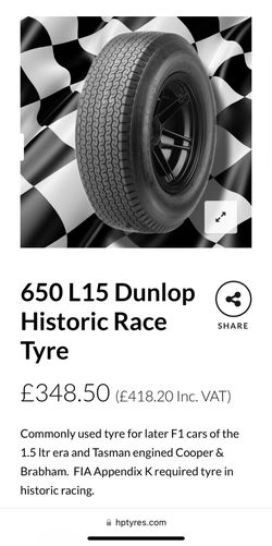 Dunlop Vintage Racing Tires- 6.5 L-15 Set Of 4$450Costa Mesa, CA