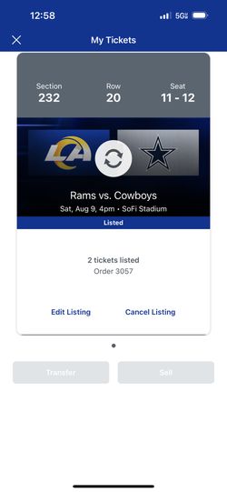 Rams Vs Cowboys Preseason Game $120Bakersfield, CA