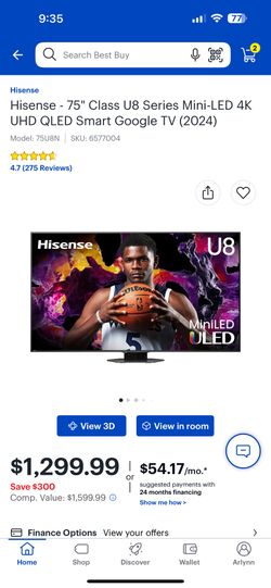 Hisense U8 Mini LED 75inches$800Chicago, IL