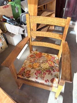 Vintage Oak Ladder-Back Rocking Chair with Floral Upholstered Seat $50Peoria, AZ