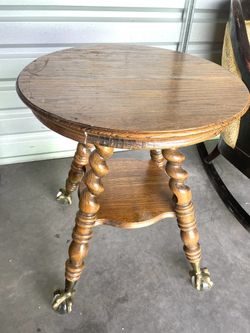 Antique Tiger Oak Parlor Lamp Table w Glass Ball & Claw Feet $450Peoria, AZ