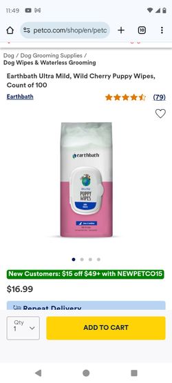 Earth Bath Puppy Wipes 120ct Pick Up Only$6Phoenix, AZ