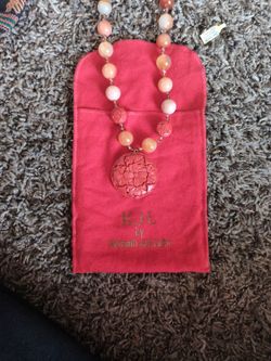 Vintage Kenneth Jay Lane Kjl Czech Republic Carved Cinnaber Pendant And Glass$50Las Vegas, NV