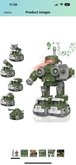 Toys Take Apart Robot Toys Set, Military Trucks Toys for 3 4 5 6 7 8 Years Old Boys, 5 in 1 Vehicles Robot Toys for Kids Christmas Birthday Gift$22Malden, MA