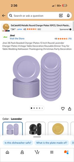Jinei 36 Pack Beaded Charger Plates 13 Inch Round Lavender Charger Plates Vintage Table Decoration Reusable Dinner Tray for Table Wedding Halloween Th$55Bakersfield, CA