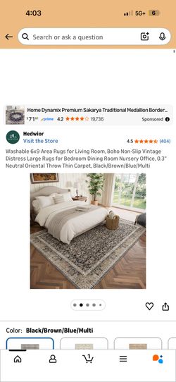 Washable 6x9 Area Rugs for Living Room, Boho Non-Slip Vintage Distress Large Rugs for Bedroom Dining Room Nursery Office, 0.3" Neutral Oriental Throw $65Bakersfield, CA