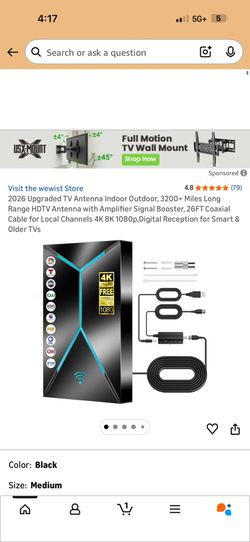 2026 Upgraded TV Antenna Indoor Outdoor, 3200+ Miles Long Range HDTV Antenna with Amplifier Signal Booster, 26FT Coaxial Cable for Local Channels 4K 8$50Bakersfield, CA