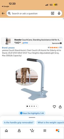 yeezoo Couch Stand Assist, Chair Couch Lift Assist for Elderly sit to Stand, 25.6"/27.6"/29.6"/31.6" Four Heights Adjustable(Light Grey, Max 300LBs Ca$60Bakersfield, CA